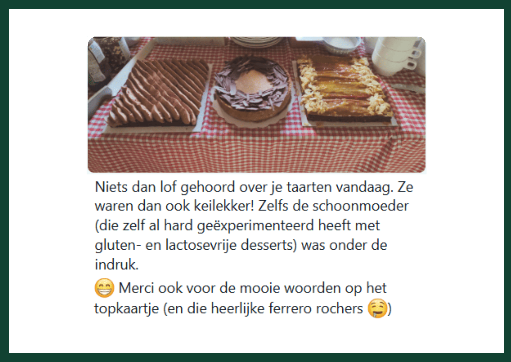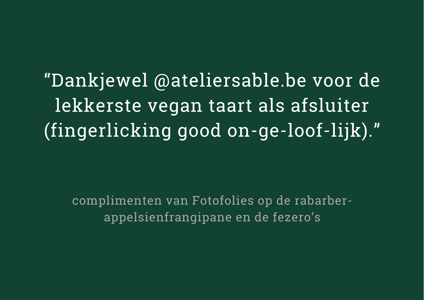 Atelier Sablé is het passieproject van Griet, een groene fijnproever met een hart voor inclusie. Net daarom is het assortiment volledig plantaardig, volledig glutenvrij én noot- en soja- arm. Mijn doel is om gebak te creëren dat minstens even lekker is dan zijn klassieke broertjes en zusjes die wél ingrediënt x of y bevatten.
